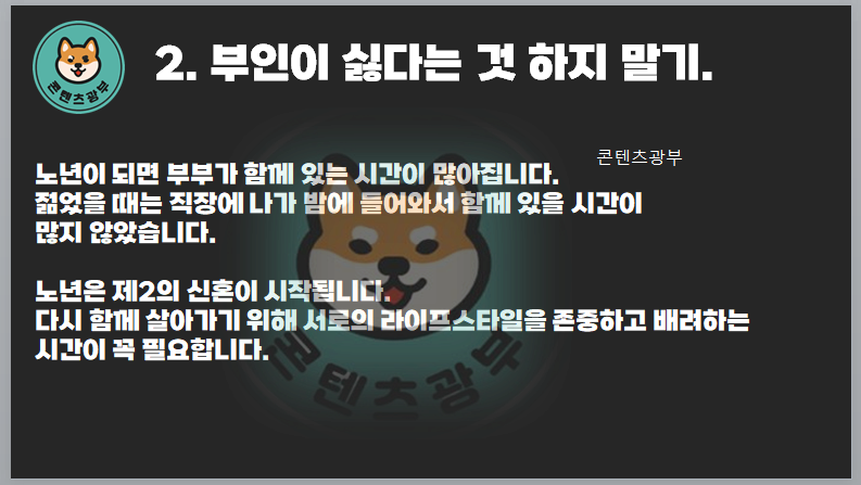 노년의 행복을 위해서는 최소한 아내의 말은 경청 해 주세요.