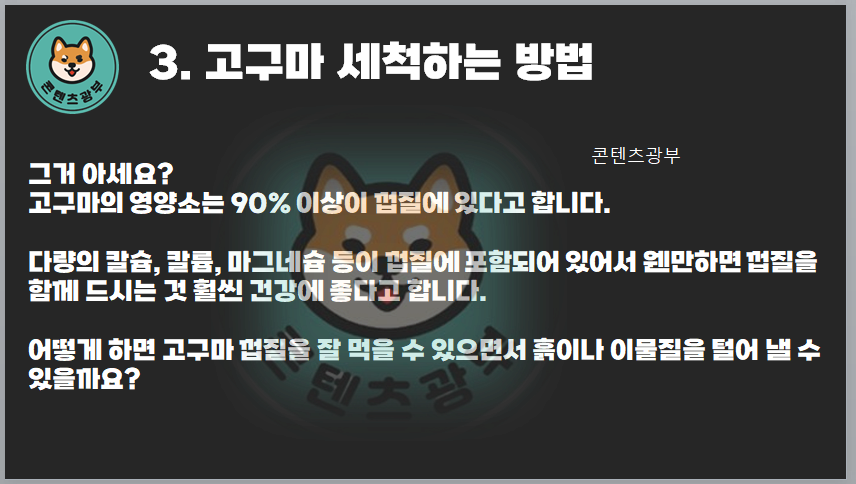 어떻게 하면 고구마 껍질을 잘 먹을 수 있으면서 흙이나 이물질을 털어 낼 수 있을까요?