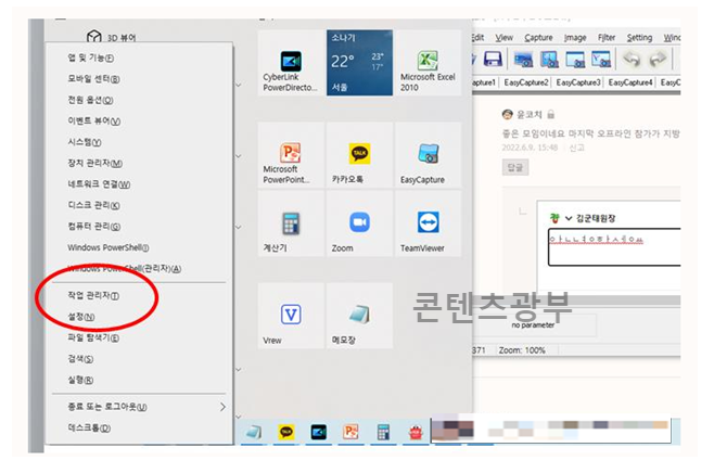 작업관리자는 우리 컴퓨터가 현재 동작되는 프로그램을 보여주는 화면입니다. 참고하세요.