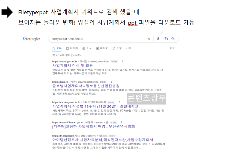 앞으로 언제든지 사업계획서, 제안서, 기획서, 마케팅플랜 등 다양한 ppt 양식 템플릿이 필요하다면 마법의 명령어 filetype:ppt 를 넣고 검색을 하시면 짜잔~ 놀랍고 신박한 정보가 와르르 쏟아집니다.